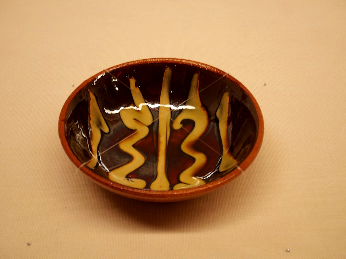岡崎の京セラ美術館で催されている「民芸展」から。一部が写真撮影ができます。 これは河井寛次郎作のスリップウェア。いかにも彼らしい作品。