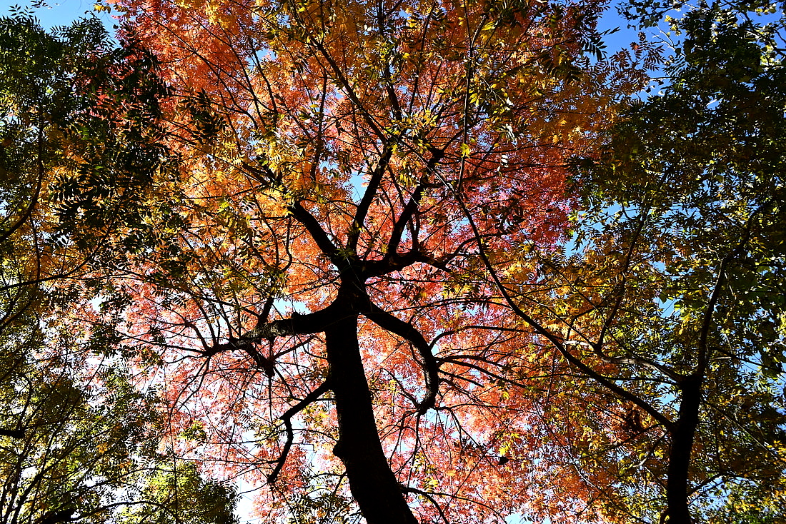 行儀良く並んだ葉の紅葉が美しく印象的です。