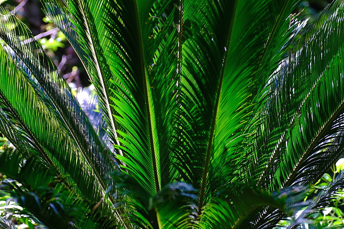 ちょっと抽象絵画のようなシュロの株の雰囲気。京都府立植物園にて。