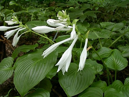 このマルバタマノカンザシは以前、花のないときにこのつややかな葉をお見せしようと出したことがありましたが、今日はなかなか清楚な花をご紹介できます。この花はギボウシに近い種類で、花の姿も似ています。