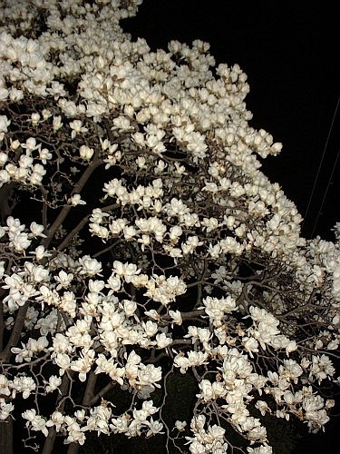 特に夜のハクモクレンの妖しい美しさは、筆舌に尽くせないものがあるのです。