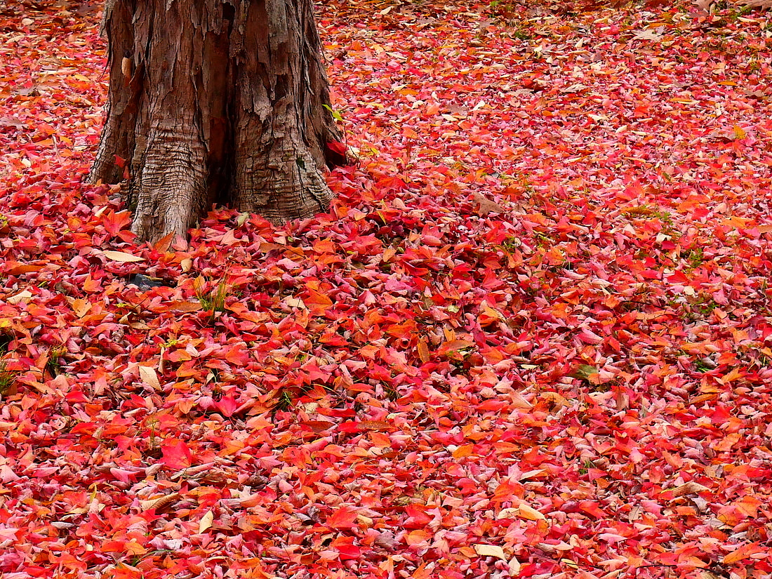赤く色づいた紅葉が散り敷いていました。