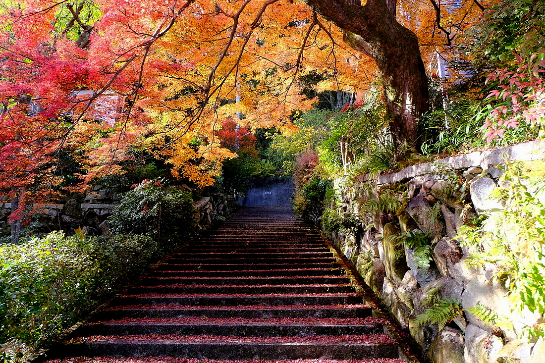石段にはモミジの落ち葉が降り積もり、紅葉がみごとです。