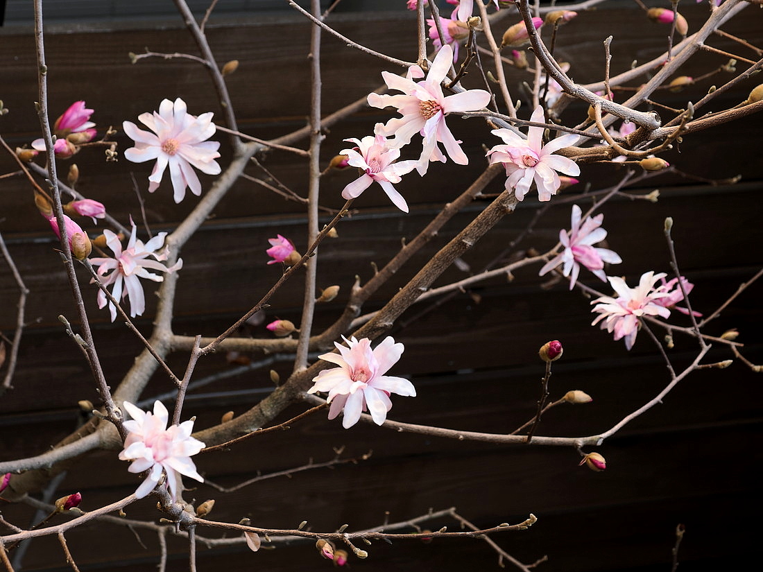 わが家に咲き出したヒメコブシの花。この花が咲き出すと