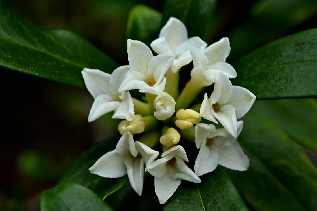 白花の沈丁花の花。わが家に咲いた沈丁花です。