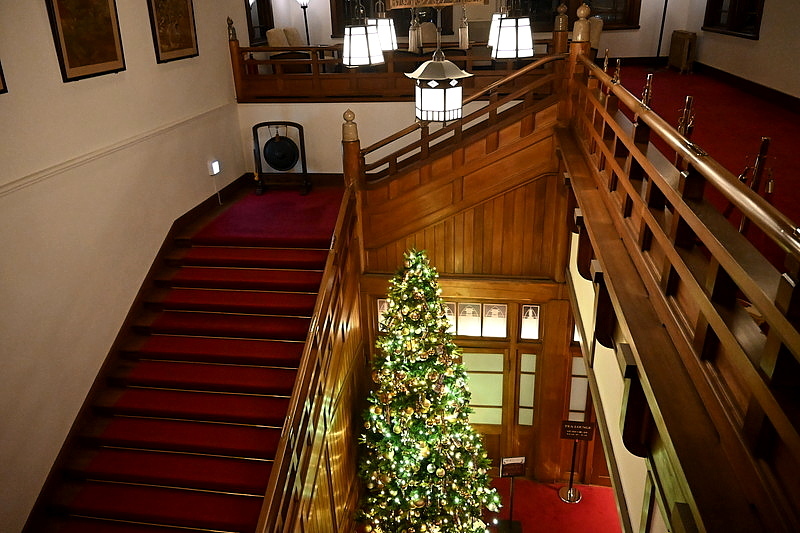 先頃奈良へ小旅行にでかけました。その目的の一つは奈良ホテルに宿泊すること。 上は奈良ホテルの正面玄関。和洋折衷の独特の雰囲気。 下の画像は、内部の階段と飾られたクリスマスツリー。踊り場には銅鑼が。