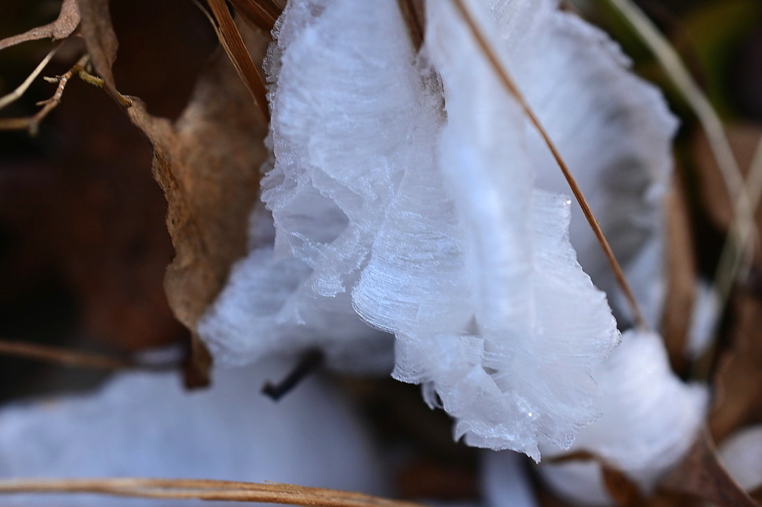 今日は節分ですが、京都の街は厳しい寒さが続いています。 枯れた草・シモバシラの茎から作られたシモバシラの板状の構造がわかる画像です。